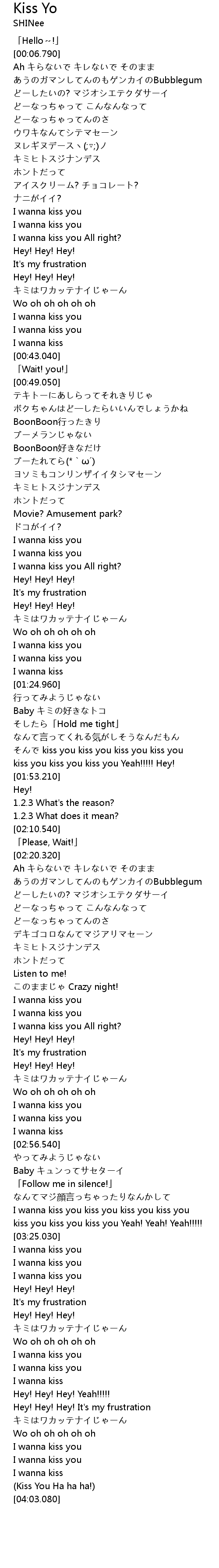 | [03:17.430] | I wanna kiss you kiss you kiss you kiss you |