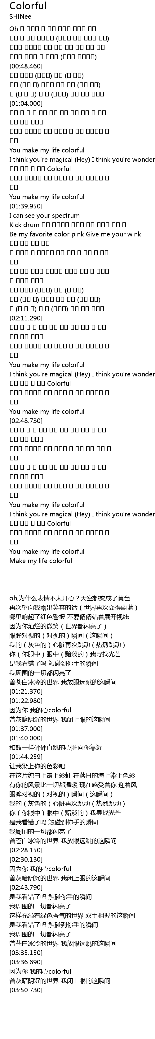 | [03:54.728] | Make my life colorful |