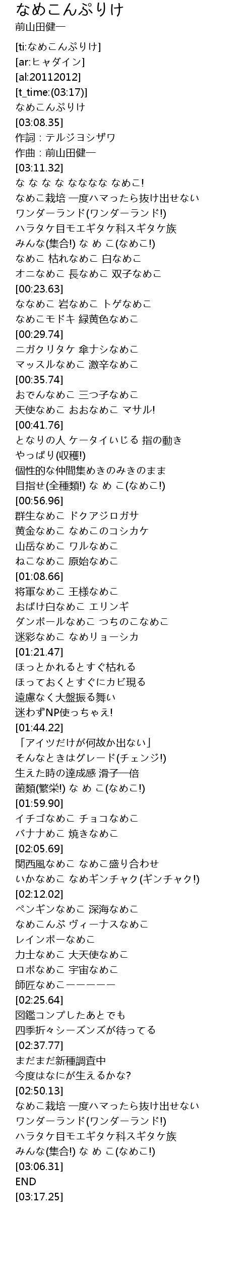 | [03:06.79] | なめこんぷりけ |