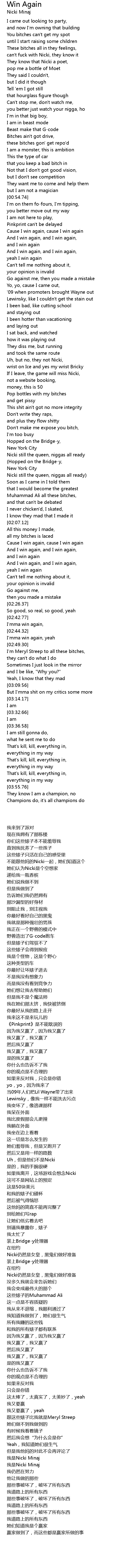 [01:50.00] Nicki still the queen, niggas all ready