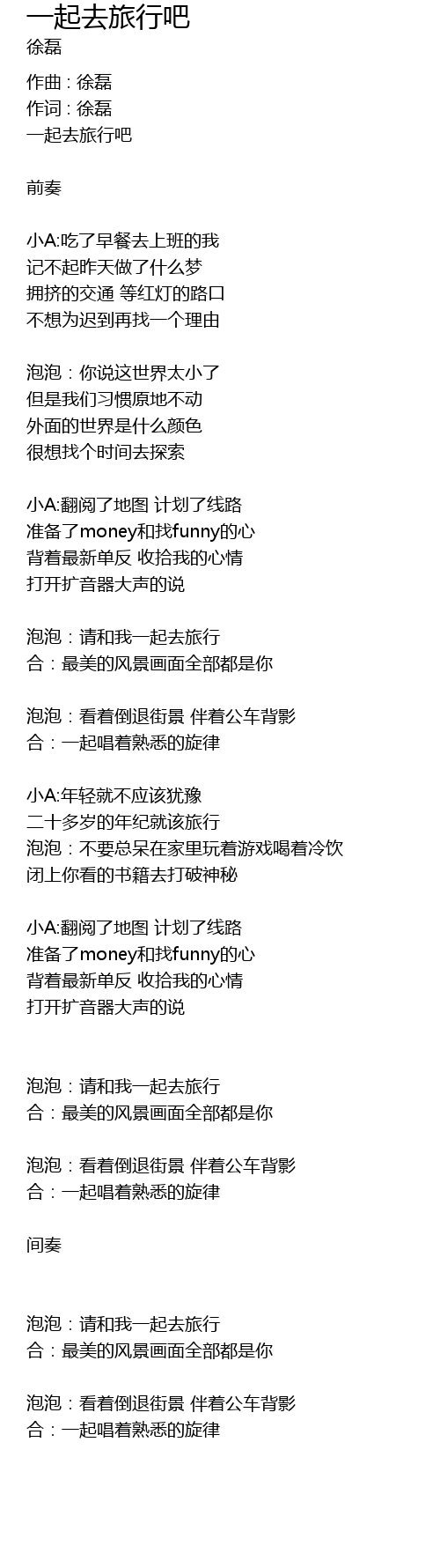 | pào pào: qǐng hé wǒ yì qǐ qù lǚ xíng | |