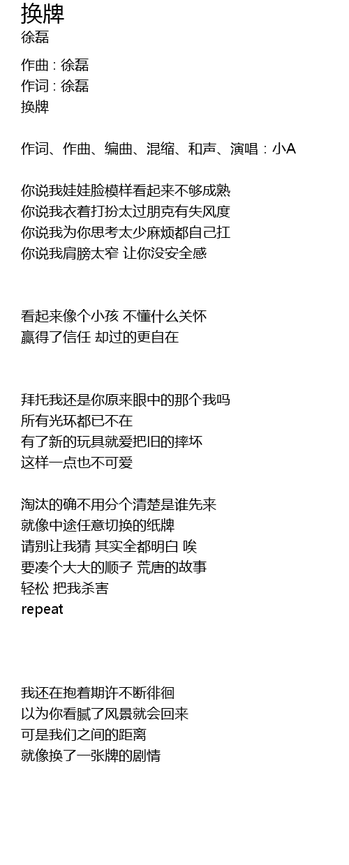 | 作词、作曲、编曲、混缩、和声、演唱:小A | |