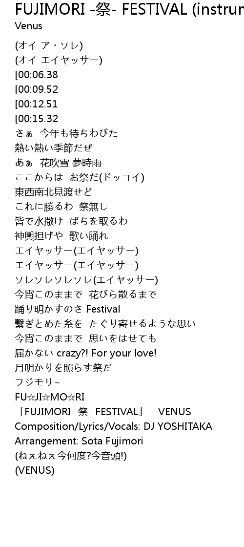 | [01:26.93] | 「FUJIMORI -祭- FESTIVAL」 - VENUS |