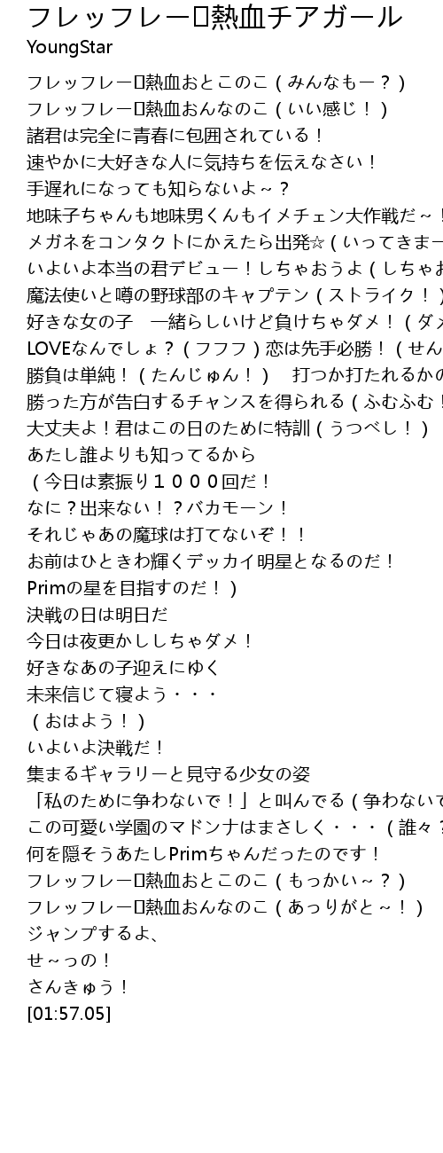 | [00:03.88] | フレッフレー♪熱血おんなのこ(いい感じ!) |