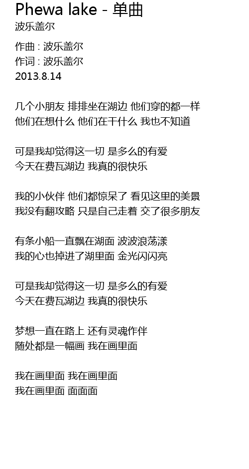 | jīn tiān zài fèi wǎ hú biān wǒ zhēn de hěn kuài lè | |