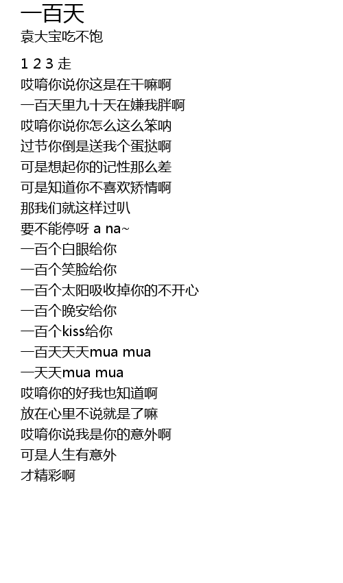 | [00:46.639] | yī bǎi tiān tiān tiān mua mua |