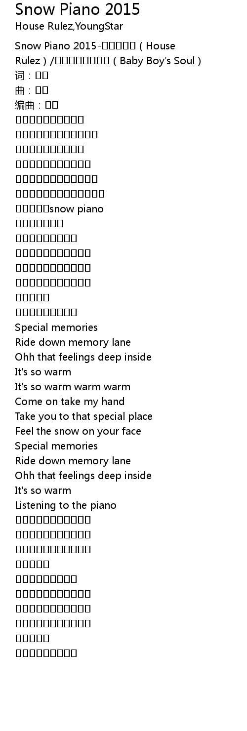 | [00:00.350] | Snow Piano 2015 House Rulez Baby Boy' s Soul |