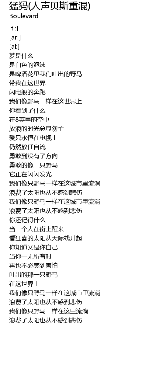 | [01:37.55] | 我们像只野马一样在这城市里流淌 |