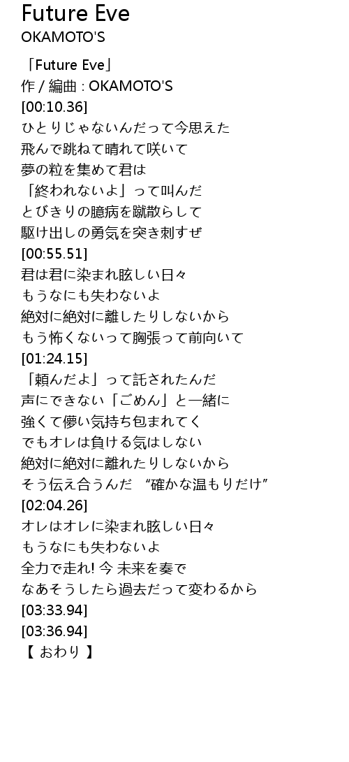 | [00:06.36] | 作/編曲∶OKAMOTO'S |