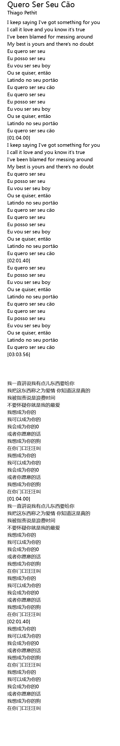 | [03:01.07] | Eu quero ser seu cão |