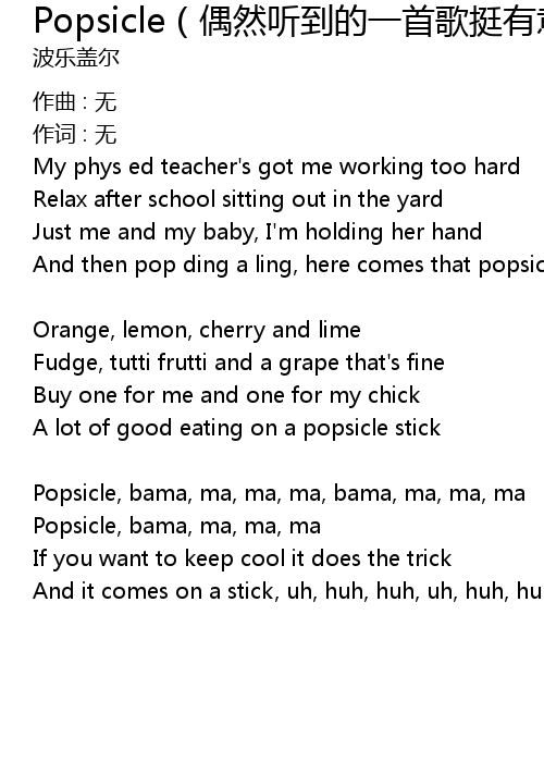 | Song | Popsicle(偶然听到的一首歌挺有意思我就给翻了)(Cover Jan&Dean) |