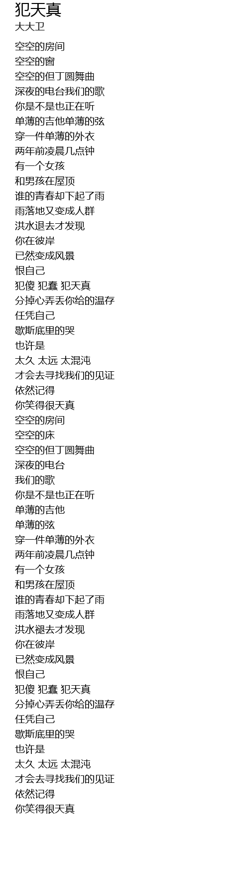 | [01:08.700] | 犯傻 犯蠢 犯天真 |