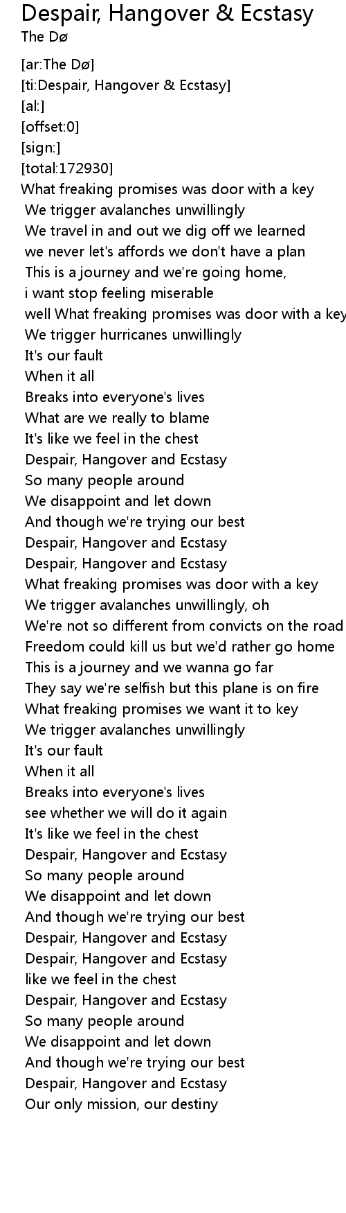| [00:43.75] | Despair, Hangover and Ecstasy |