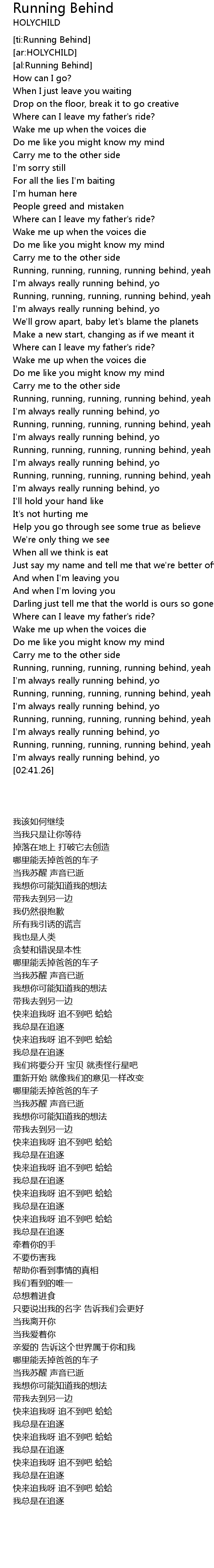 [ti:Running Behind] |