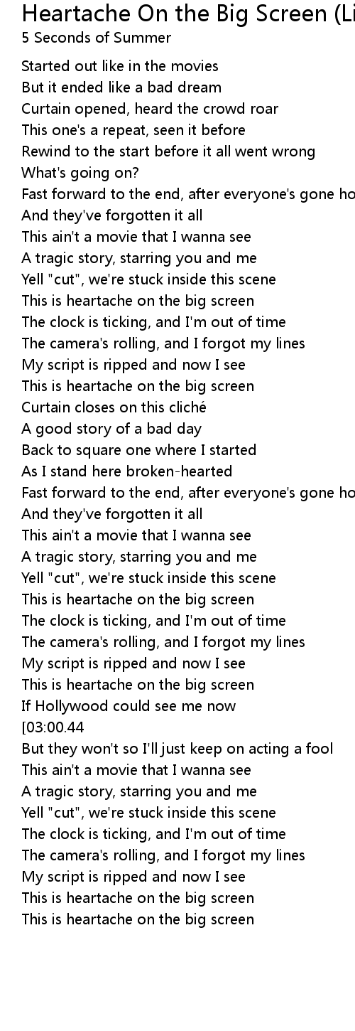 | [01:46.85] | This is heartache on the big screen |