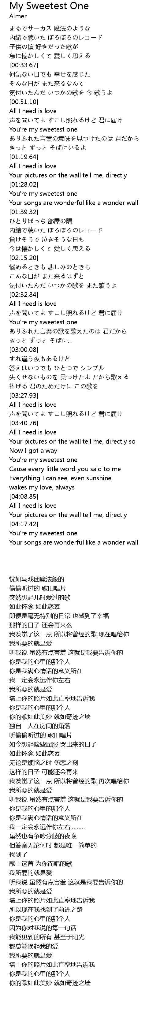 | [02:33.42] | All I need is love |