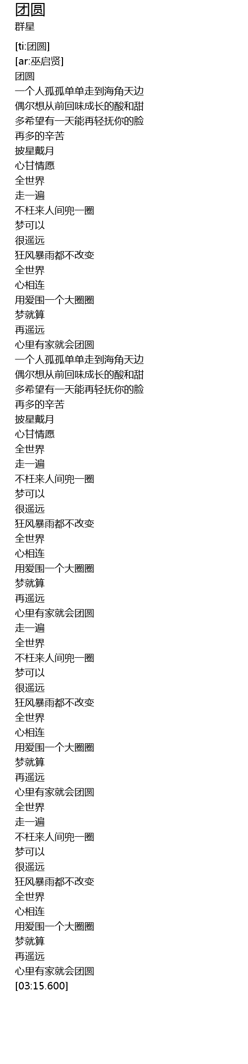 | [03:09.563] | xīn lǐ yǒu jiā jiù huì tuán yuán |
