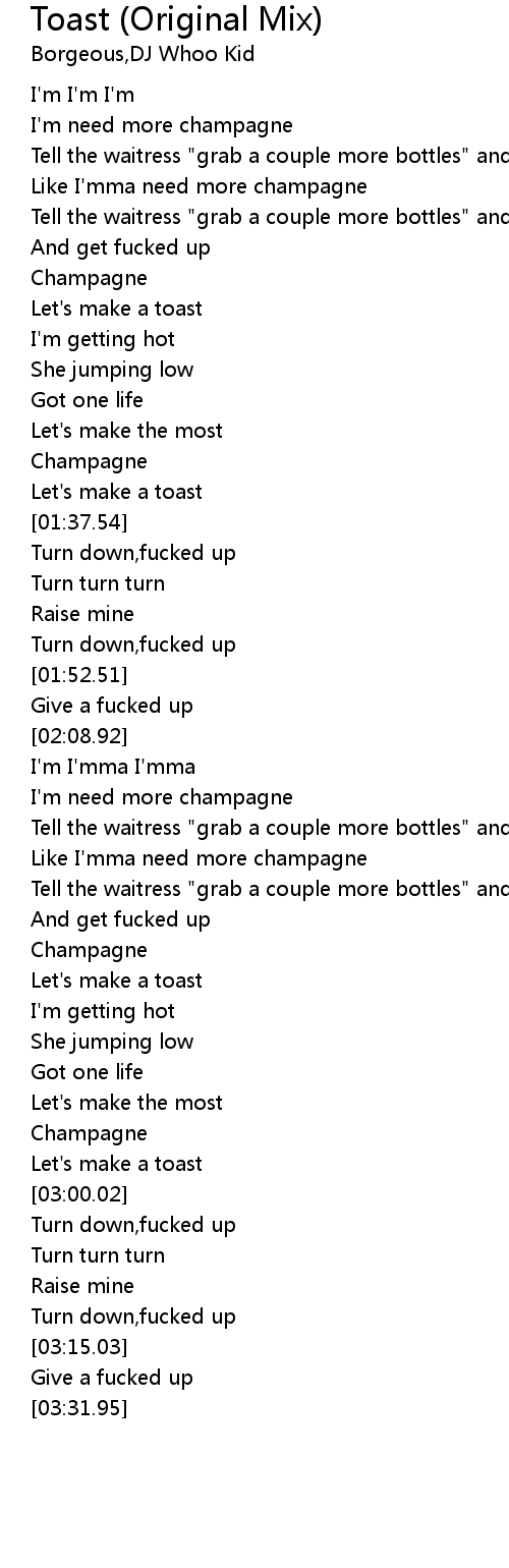 | [01:17.79] | Tell the waitress "grab a couple more bottles" and drink them up |