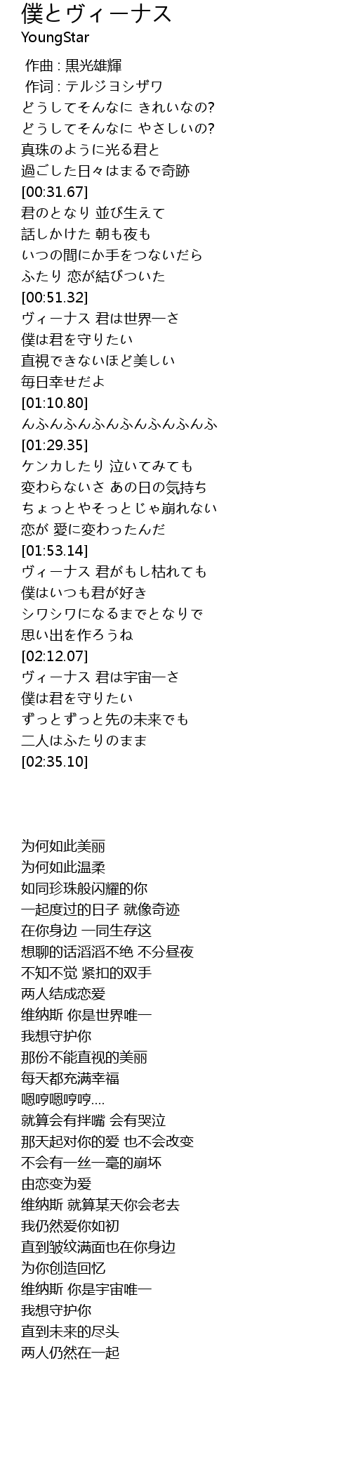 | [02:16.04] | ヴィーナス 君は宇宙一さ |