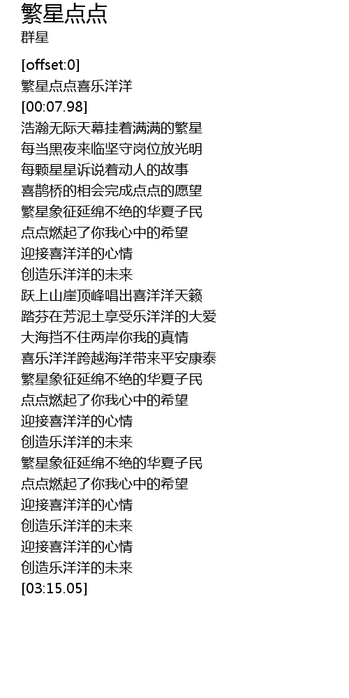| [00:00.68] | 繁星点点喜乐洋洋 |