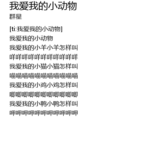 | [00:01.532] | 我爱我的小动物 |