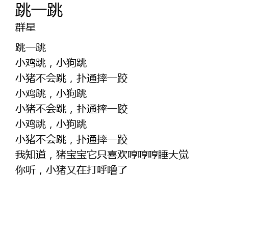 | [00:20.490] | 小猪不会跳,扑通摔一跤 |