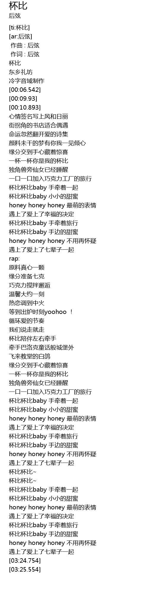 | [02:04.798] | 杯比杯比baby 小小的甜蜜 |