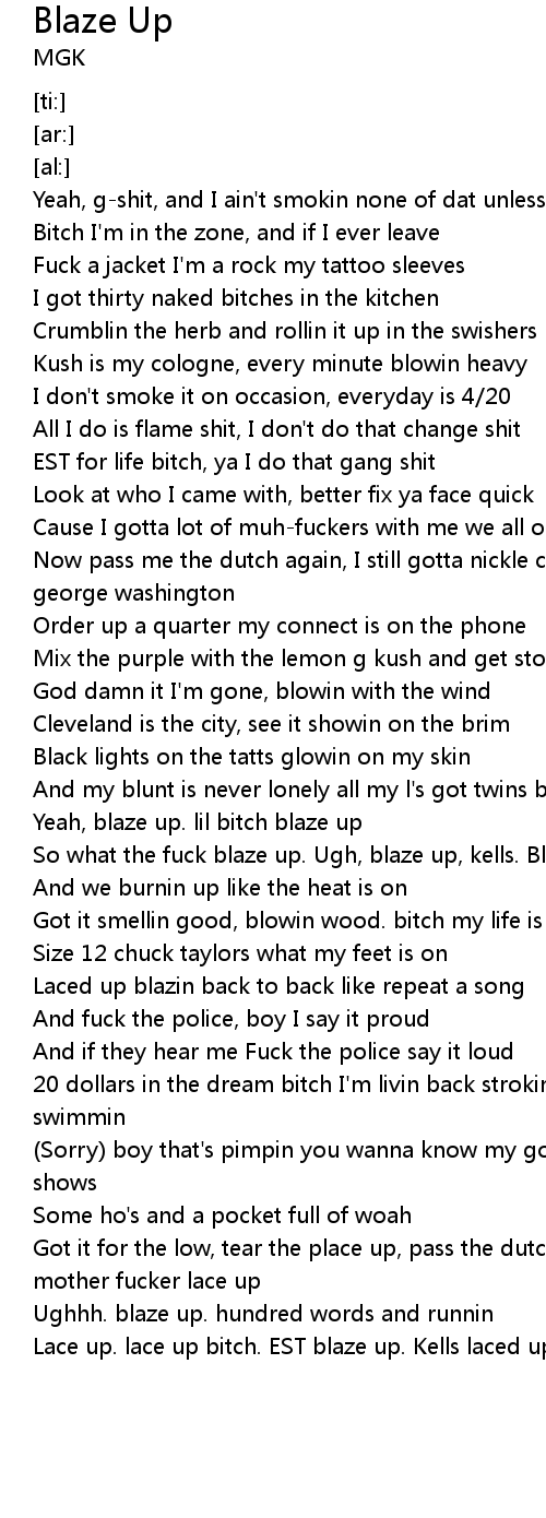 Got it for the low, tear the place up, pass the dutch and blaze up mother fucker lace up |
