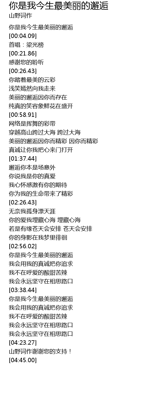 | [04:38.00] | 山野词作谢谢您的支持! |