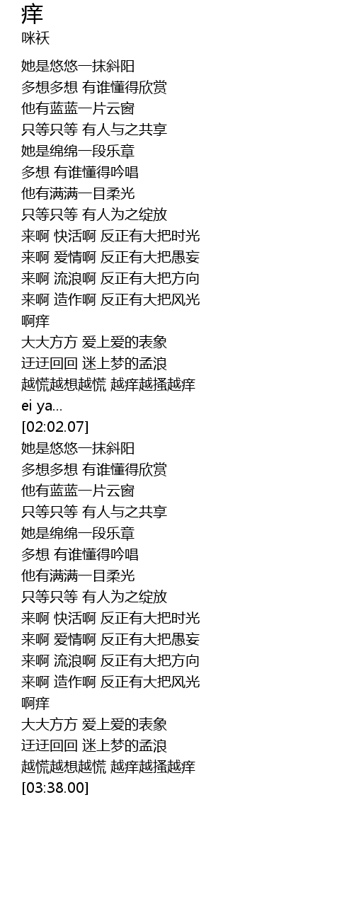 | [01:41.30] | 越慌越想越慌 越痒越搔越痒 |