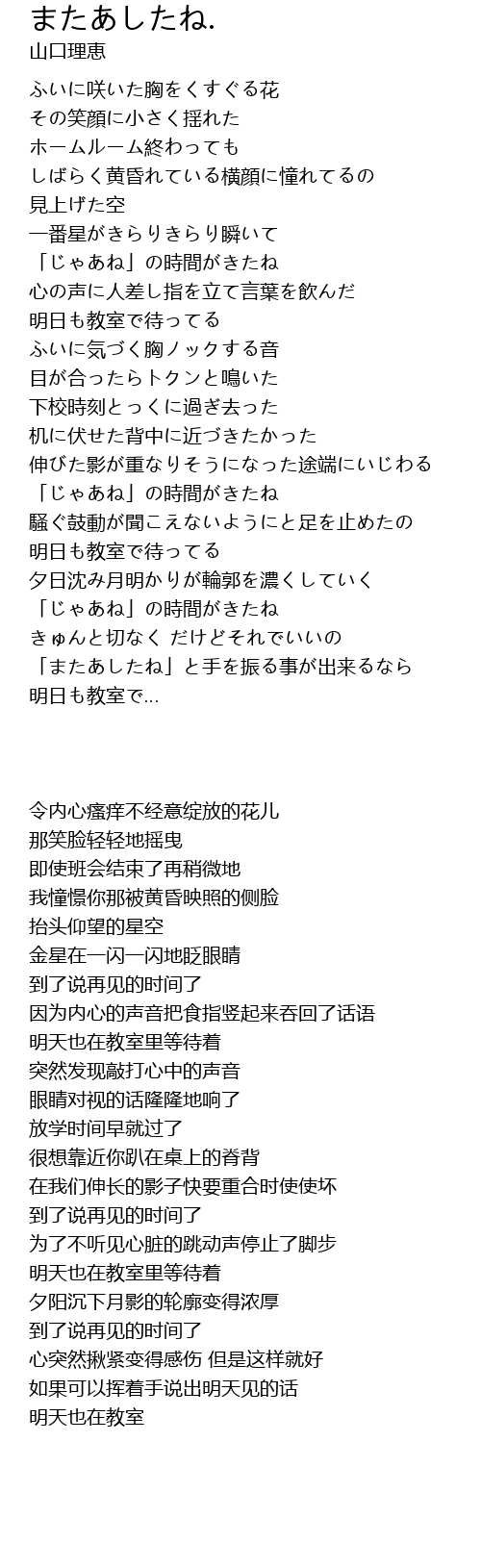 | [01:35.32] | 明日も教室で待ってる |