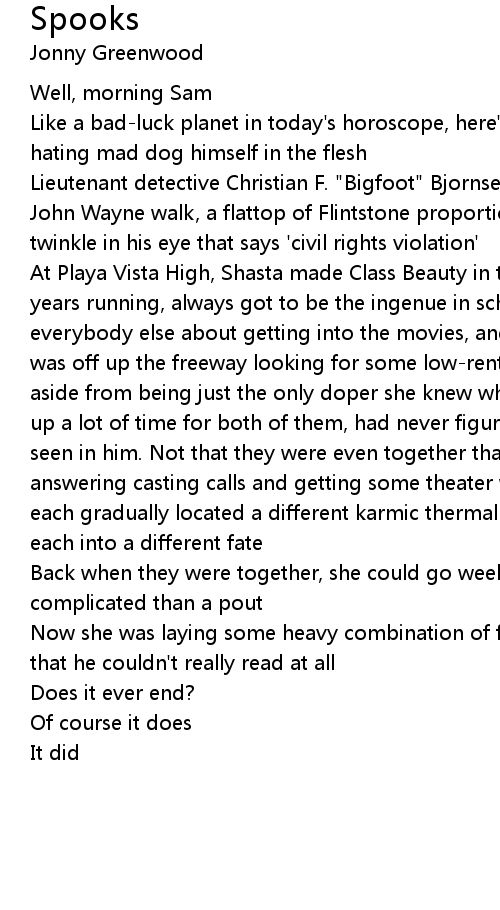 [01:03.37] At Playa Vista High, Shasta made Class Beauty in the yearbook four years running, always got to be the ingenue in school plays, fantasized like everybody else about getting into the movies, and soon as she could manage it was off up the freeway looking for some low-rent living space in Hollywood. Doc, aside from being just the only doper she knew who didn't use heroin, which freed up a lot of time for both of them, had never figured out what else she might've seen in him. Not that they were even together that long. Soon enough she was answering casting calls and getting some theater work, onstage and off, and they each gradually located a different karmic thermal above the megapolis, gliding each into a different fate