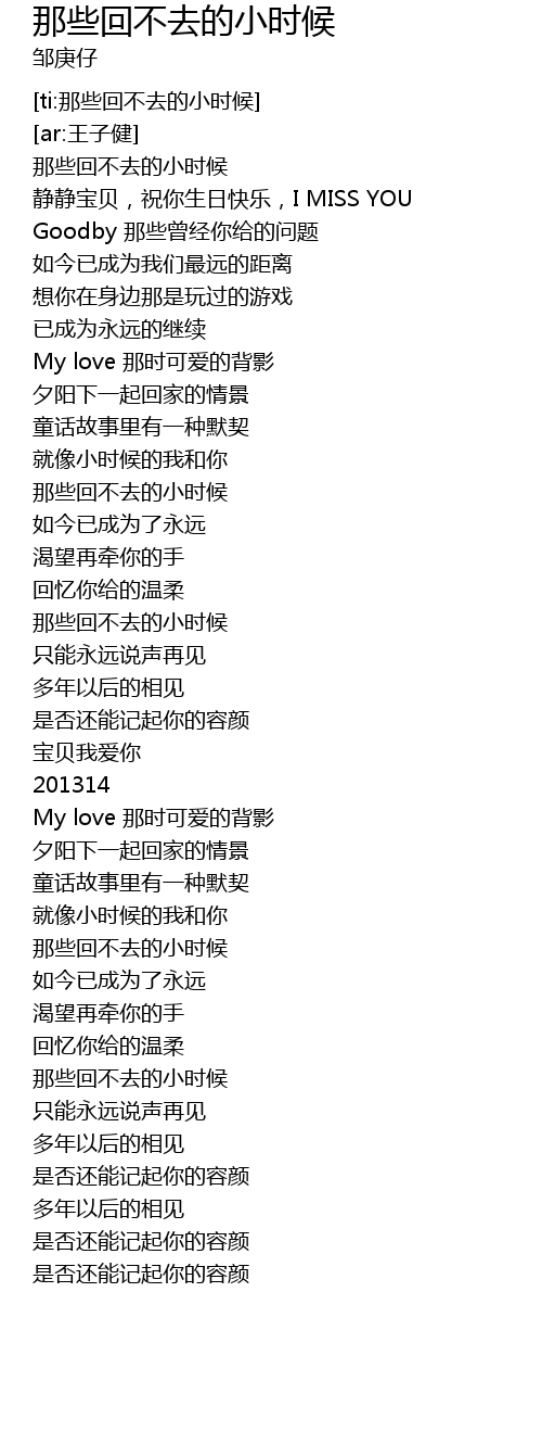 | [00:08.860] | jing jing bao bei, zhu ni sheng ri kuai le, I MISS YOU |