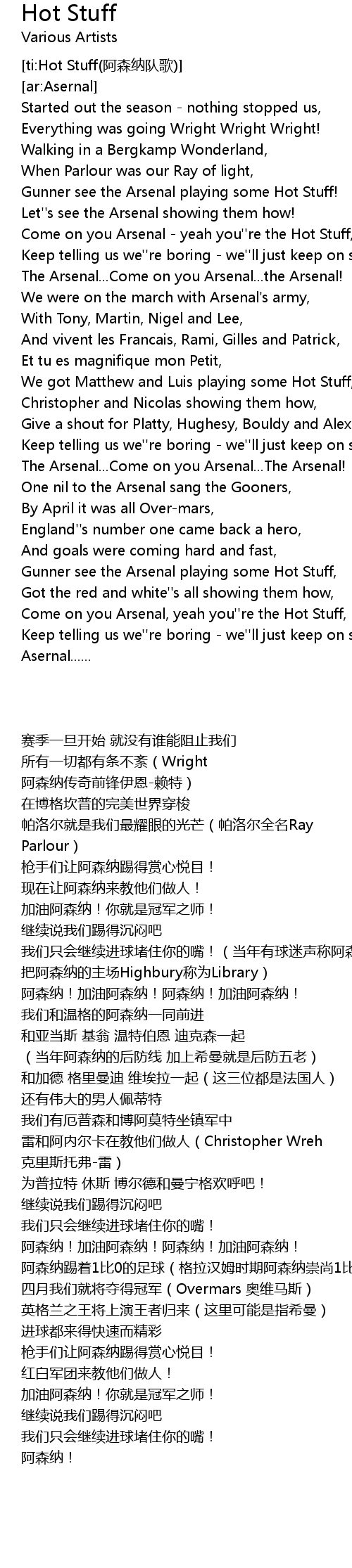 | [ti:Hot Stuff(阿森纳队歌)] | |