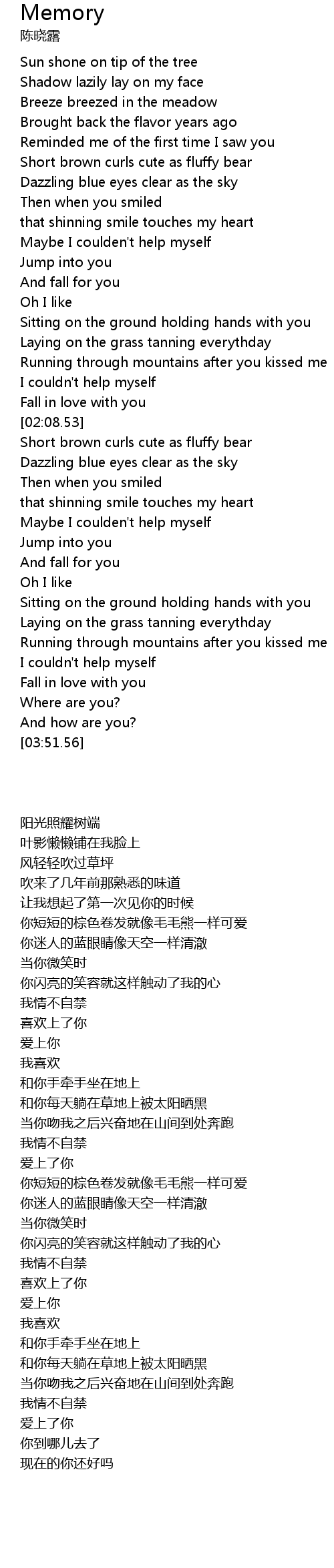 | [02:29.51] | Short brown curls cute as fluffy bear |