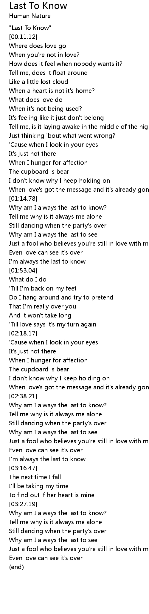 I'm always the last to know |