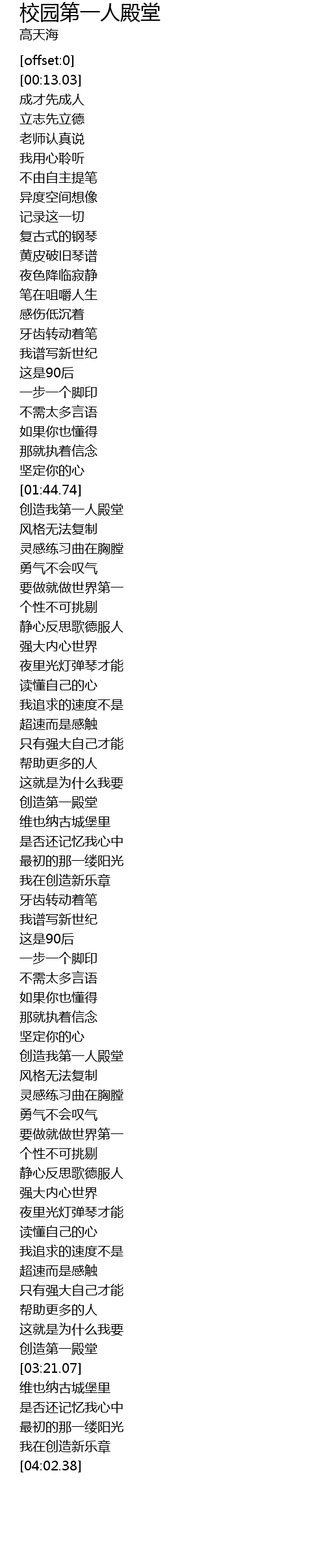 | [02:16.91] | chuàng zào dì yī diàn táng |