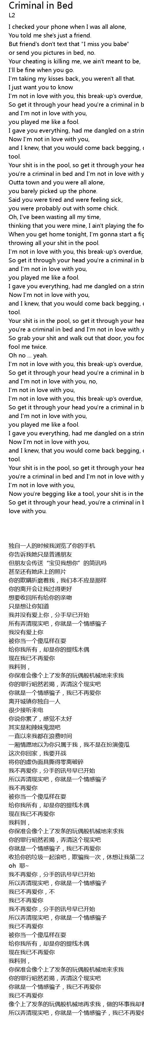 [03:08.43] So get it through your head, you're a criminal in bed and I'm not in love with you.