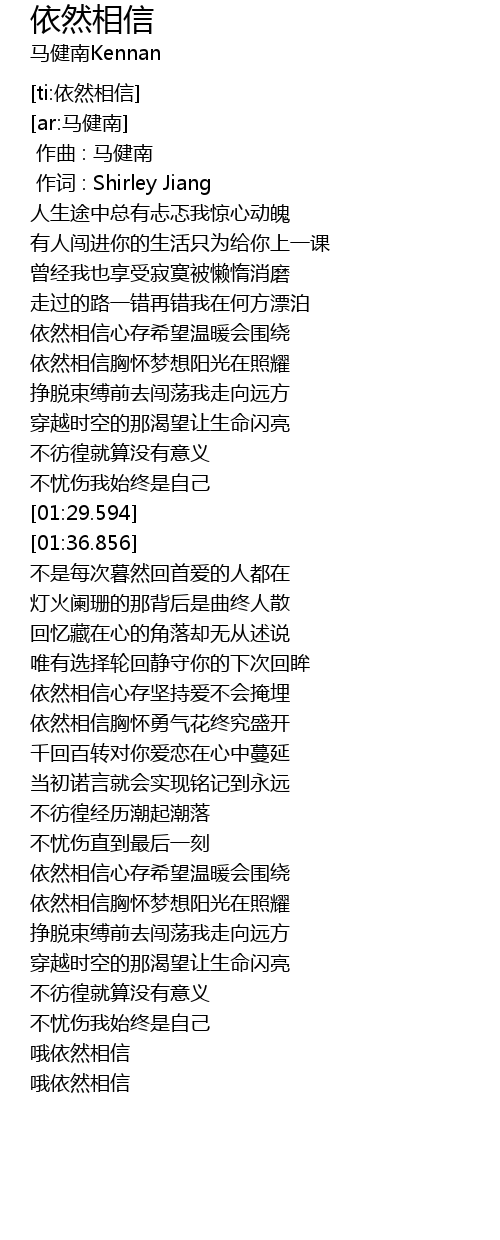 | [00:01.00] | zuò cí : Shirley Jiang |