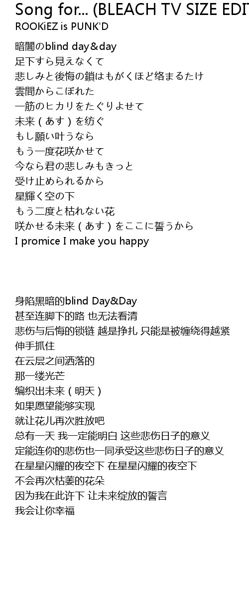 | Song | Song for... (BLEACH TV SIZE EDIT) |
