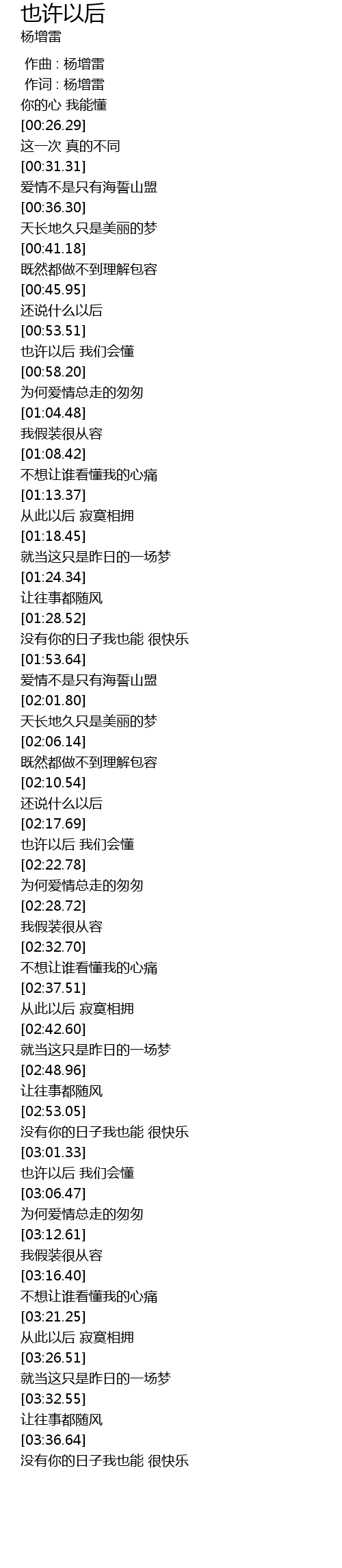 | [03:01.64] | yě xǔ yǐ hòu wǒ men huì dǒng |