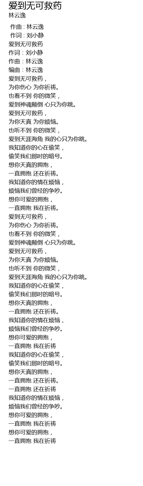 | [00:03.660] | 爱到无可救药 |