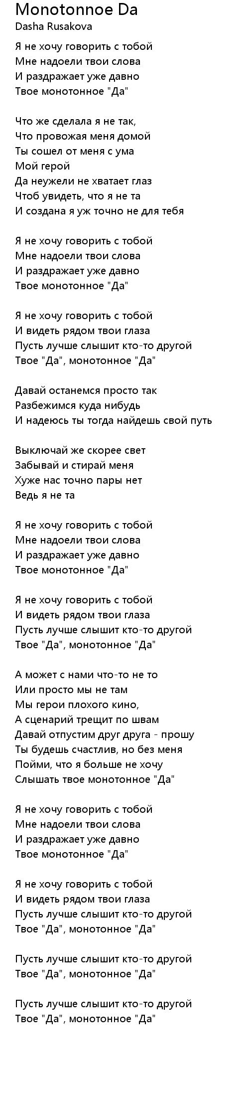 Твое "Да", монотонное "Да" |