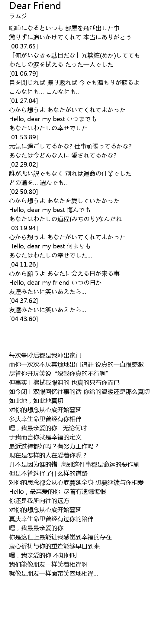 | [04:24.97] | Hello, dear my friend いつの日か |