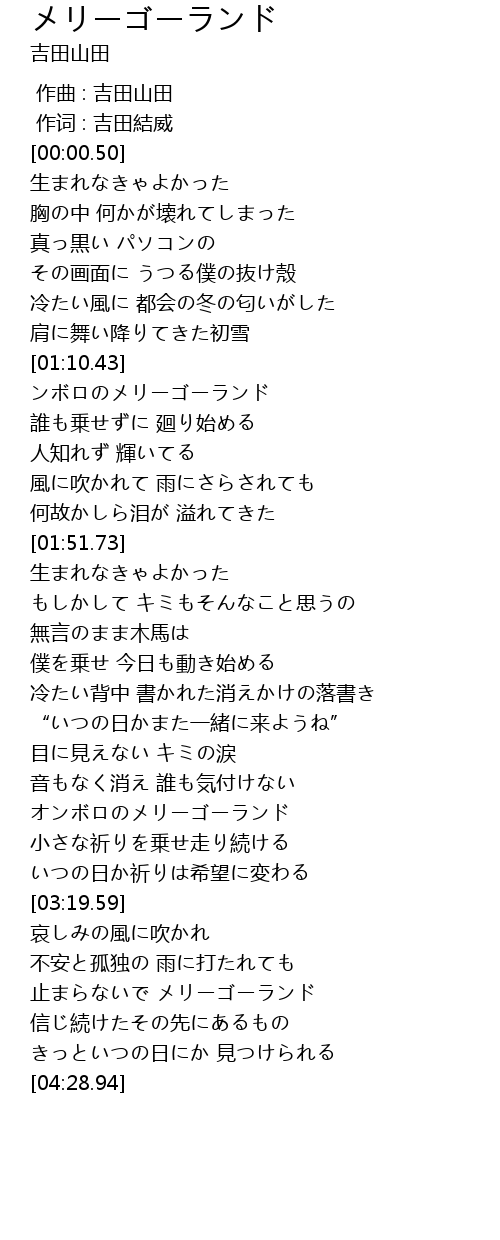 | [04:03.65] | 止まらないで メリーゴーランド |