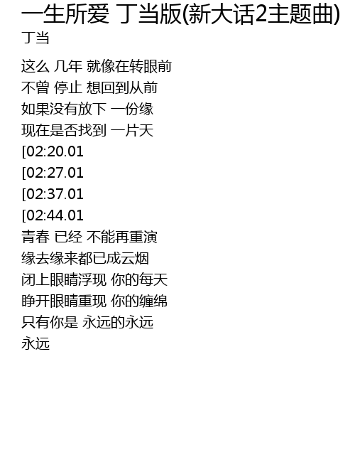| [01:30.01][02:44.01] | jiù zhè yī cì yī cì dào yǒng yuǎn |