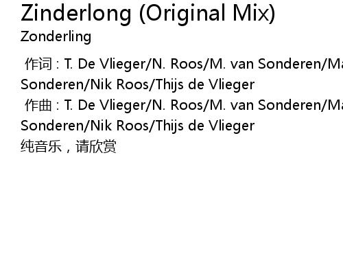 | [00:01.000] | zuò qǔ : T. De Vlieger N. Roos M. van Sonderen Martijn van Sonderen Nik Roos Thijs de Vlieger |