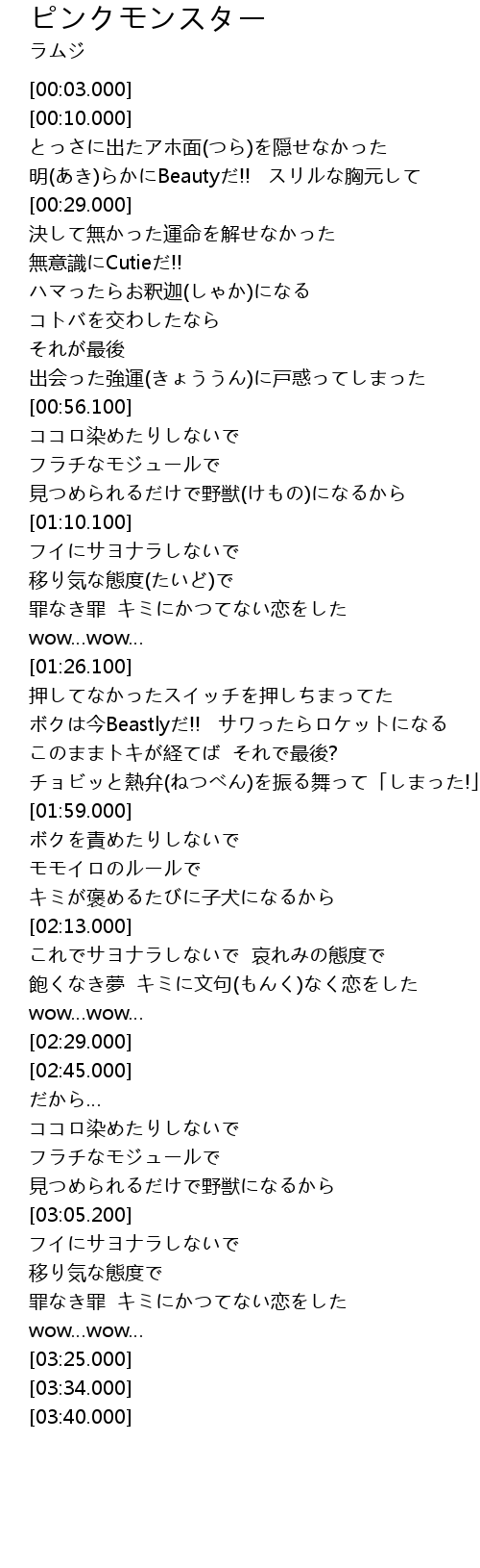 | [01:38.000] | ボクは今Beastlyだ!! サワったらロケットになる |