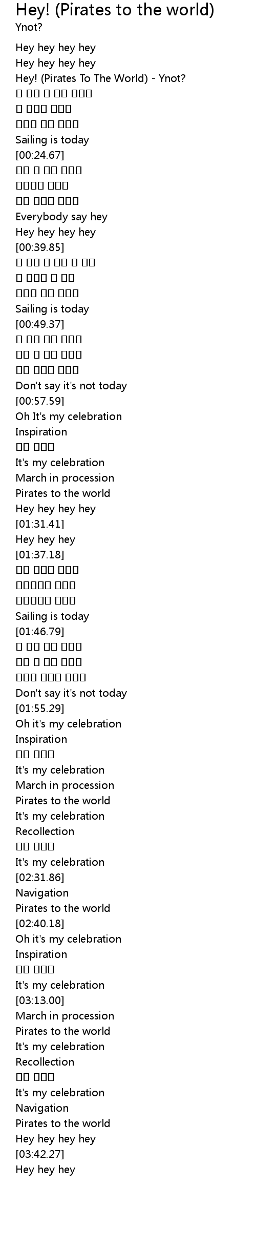| [00:15.41] | Hey! (Pirates To The World) - Ynot? |