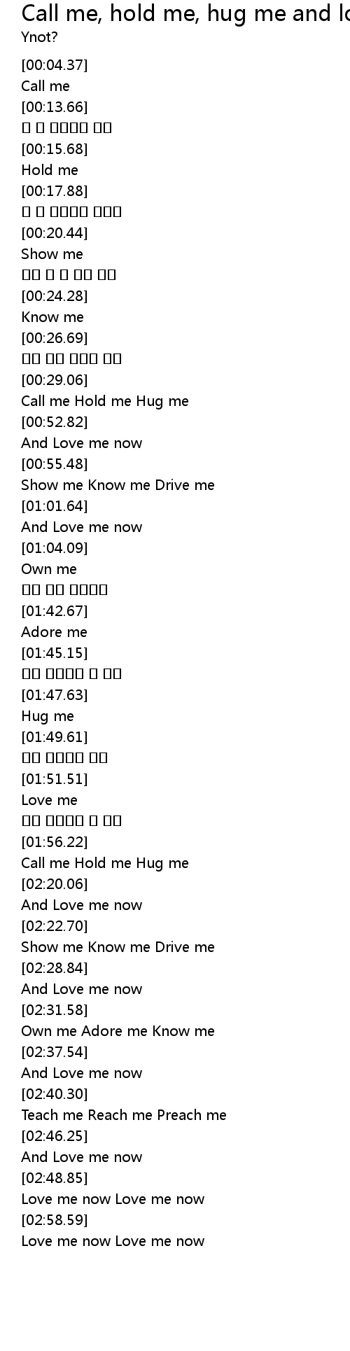 | [02:14.97] | Call me Hold me Hug me |